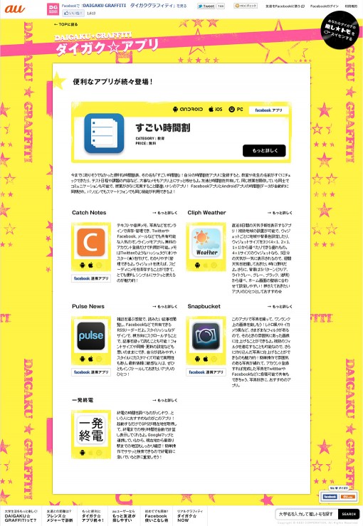 au x FACEBOOKの夢のコラボ企画、「ダイガクグラフィティ」のAD/Dを担当させて頂きました。