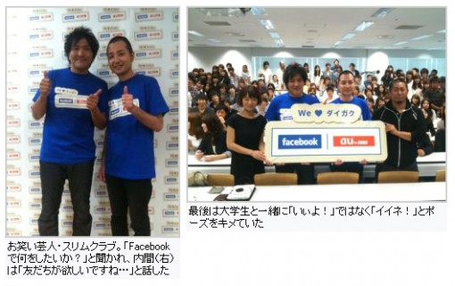 ローンチイベントでは、お笑い芸人のスリムクラブが法政大学でFACEBOOK講義を受けたり。